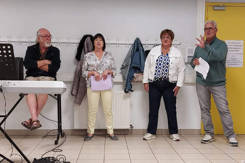 Reprise dans la bonne humeur : Mireille passe le flambeau avec une nouvelle co présidence assurée par Florence et Alain.