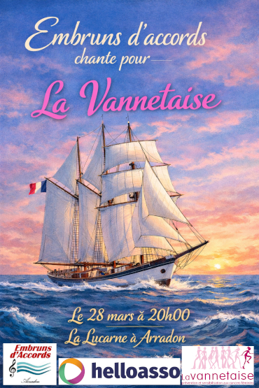 « Tous les Évènements Cet évènement est passé Embruns d’accords chante pour la Vannetaise mars 28 @ 20 h 00 min - 22 h 30 min « L’ARCHE : Paroles de FEMMES Les Clefs de Sol accueillent Chantebrec’h » + Google Agenda+ Exporter vers iCal Détails Date : mars 28 Heure : 20 h 00 min - 22 h 30 min Lieu Arradon – La Lucarne
